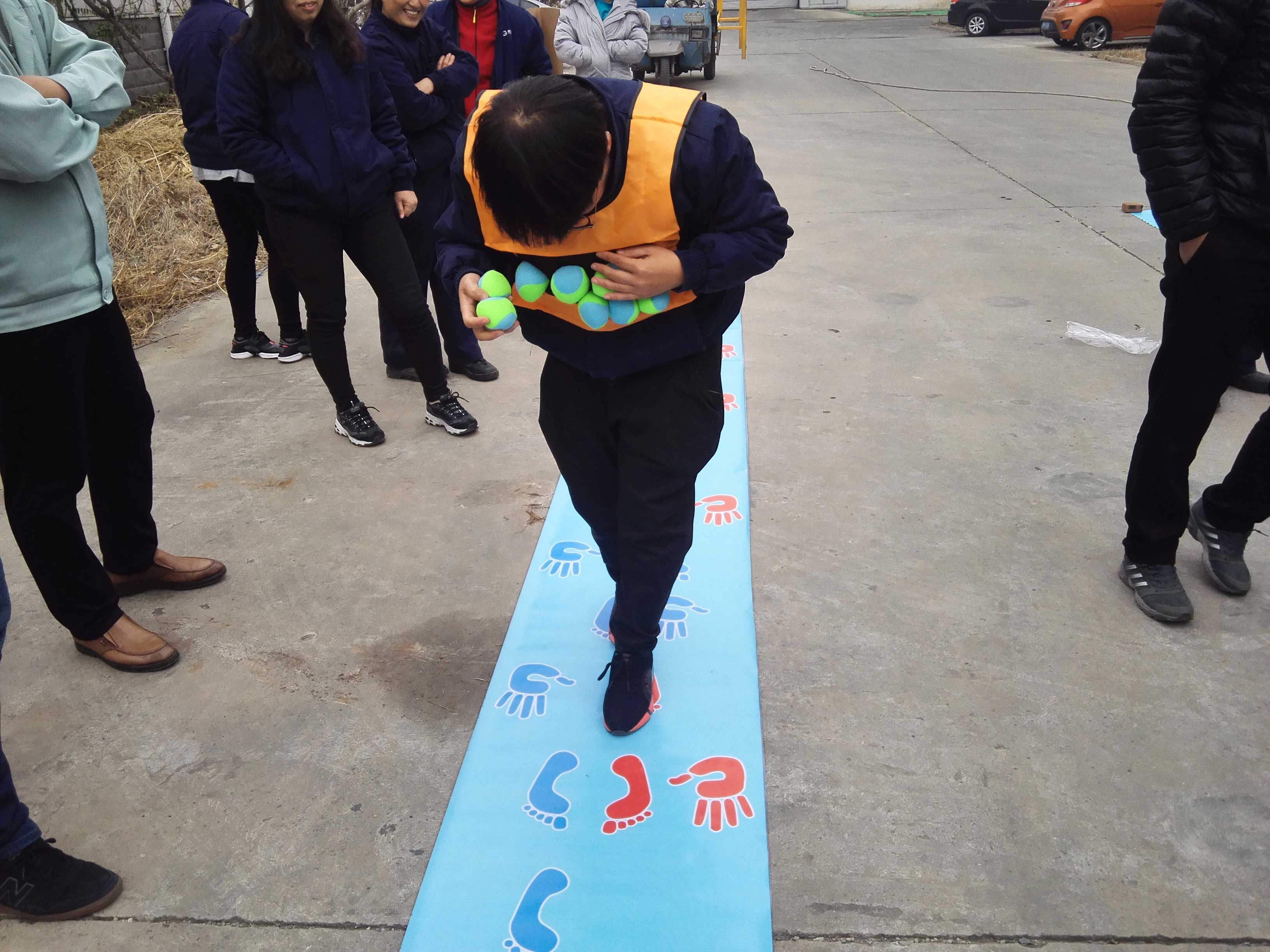 第五項(xiàng)手腳并用比賽,4人參賽,分男女兩隊(duì),不出錯(cuò)誤最先到達(dá)終點(diǎn)的人員獲勝。猛一看好像這項(xiàng)比賽最沒有技術(shù)含量,但卻是最考驗(yàn)自身協(xié)調(diào)性的比賽。短短的賽道難住了所有參賽選手,一會(huì)兒手出界了,一會(huì)兒腳不知道放哪了,一會(huì)兒又把球丟了,簡直急壞了觀賽的同事,每個(gè)參賽選手旁邊都出現(xiàn)了好幾個(gè)“軍師”,大家希望能夠幫到參賽者。
